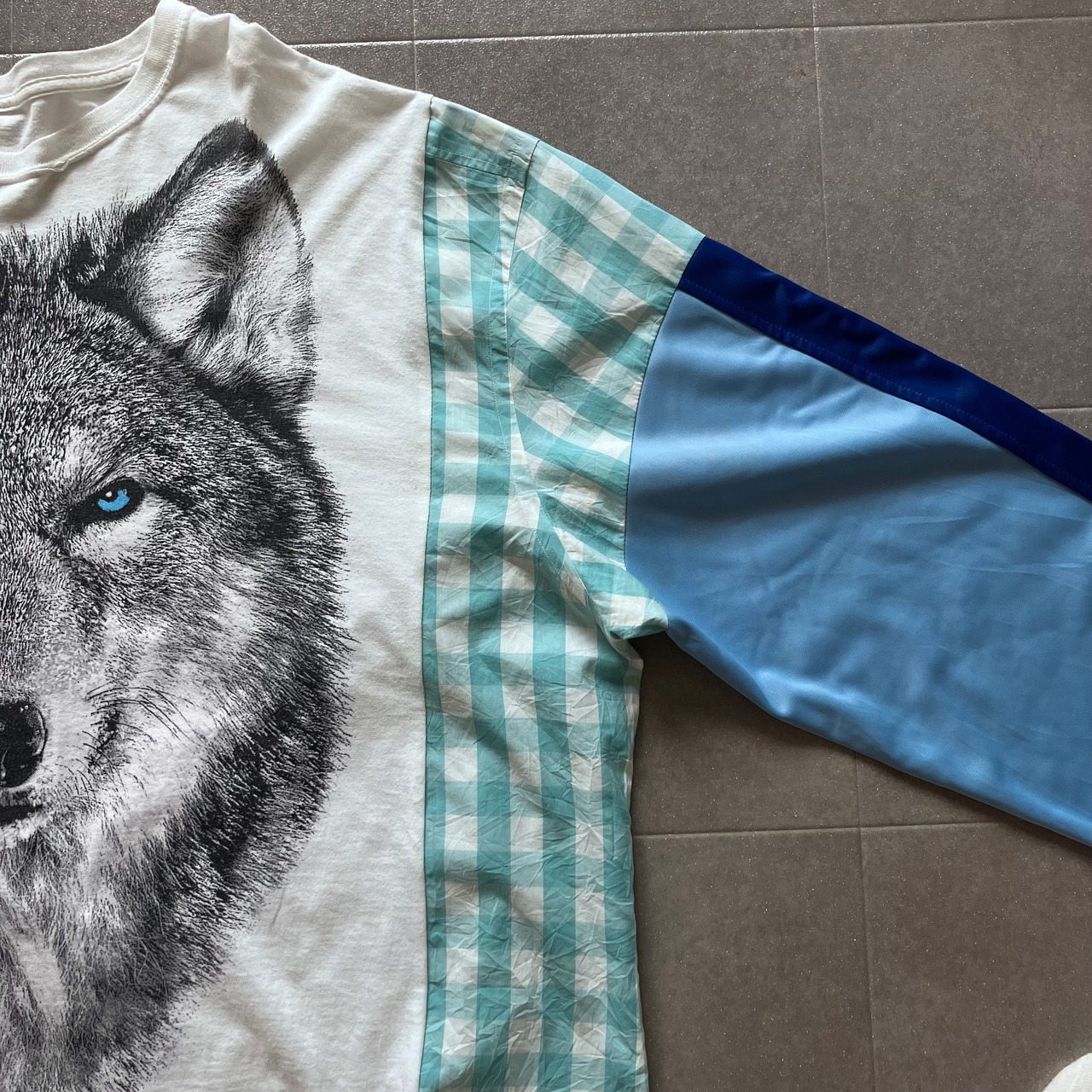 オオカミのTシャツにシャツとジャージ袖をドッキングした超ロングスリーブのトップスです。 垂れる袖がたまりません…·̩͙໒꒱·̩͙