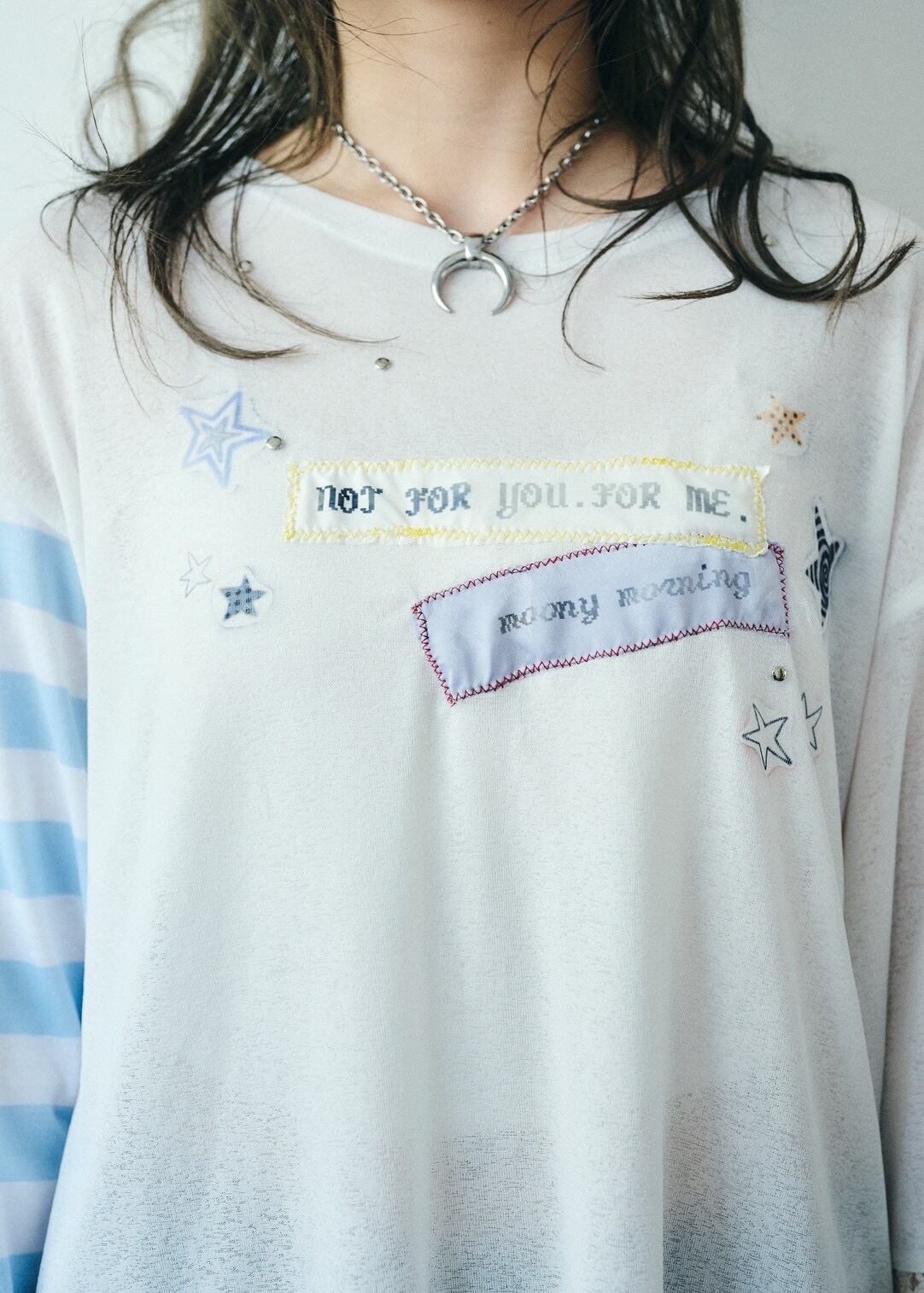 Not for you.For me.とmoony morningのパッチを縫いつけ、周りに色んな星を散りばめました。
